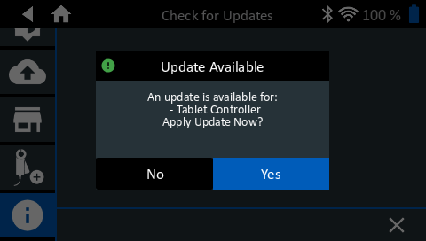 The easiest way to ensure your DSS-5000 automatically performs any available software updates is to always dock your DSS-5000 at the end of the day in the dock. Make sure the dock is connected to power, and that the Controller has Wi-Fi Internet access. The DSS-5000 will automatically wake itself up overnight to check for any available software updates, and perform the installation without manual user intervention.