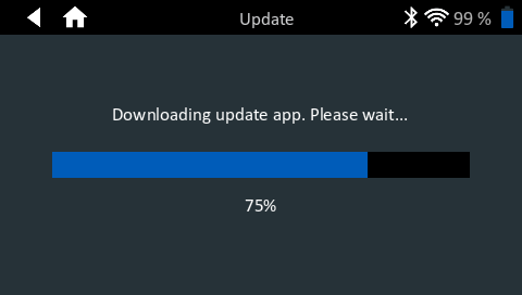 Whether through the pop-up window, Messages app or Settings app, once you begin the software update process you will see a screen like the one below which indicates your DSS-5000 is downloading the latest update installer application. Depending on the speed of your Wi-Fi Internet connection, this process should take between 2-5 minutes.