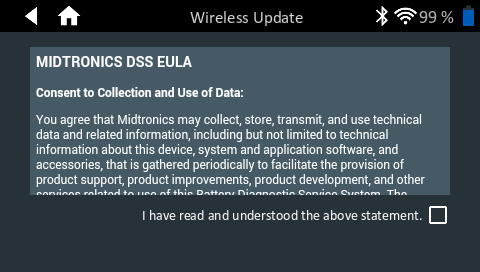 Once you have downloaded the latest update installer application you are asked to accept the End User License Agreement (EULA) by taping in the checkbox.